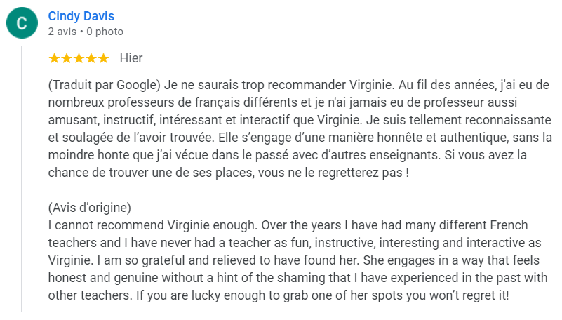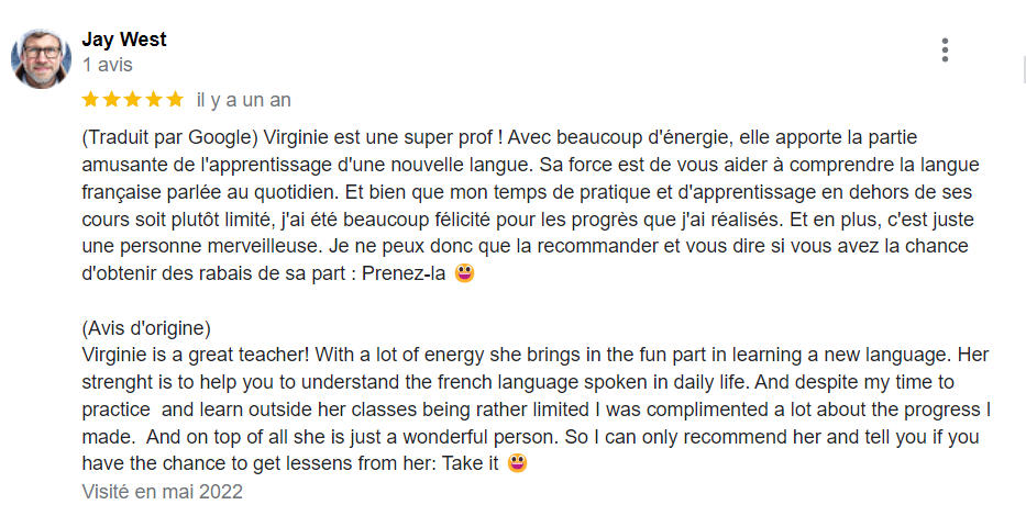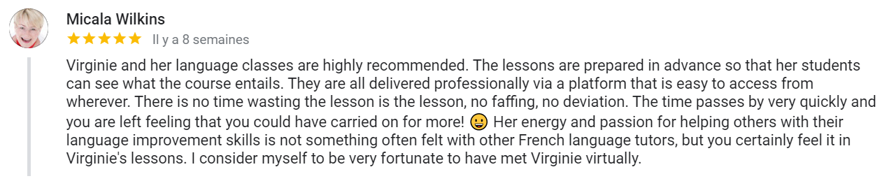 1-1 classes are a great way to improve you French without fearing to make mistakes, because YES, mistakes are allowed in my classes!